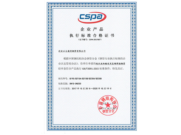 3091-2015執(zhí)行標(biāo)準(zhǔn)合格證書(邯鄲)
